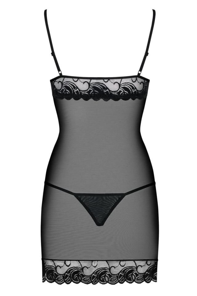 Wonderia to koszulka nocna, która uwodzi wyjątkową linią dekoltu. Koronkowe miseczki, cienkie, modne paski, słodka, mała kokardka - a to wszystko w zestawieniu z czarnym, elastycznym, siateczkowym tiulem. Szukasz czegoś intrygującego? Stop! Właśnie to znalazłaś. Stringi w komplecie. Skład: 90% poliamid, 10% elastan.