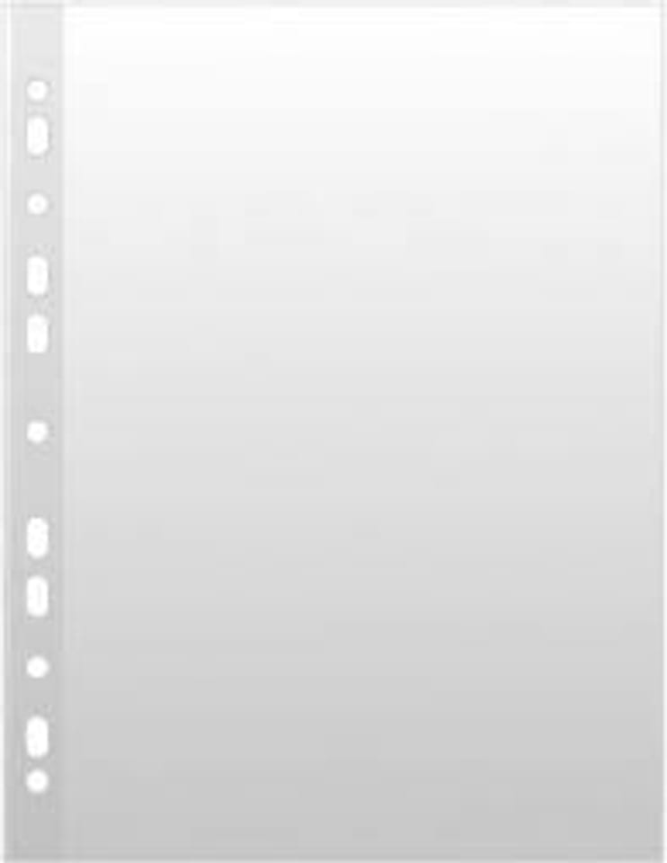 * wykonane z miękkiej, gładkiej folii polipropylenowej o grubości 50 µm, wzmocniony brzeg * posiada właściwości antyrefleksyjne * krystaliczne, transparentne * otwarte na górze * antyelektrostatyczne * odpowiednie do dokumentów w formacie A4 * ilość dziurek do wpięcia: 11 * rozmiar: 230x305mm * 100 sztuk w j.s. (kartonik) * kolor transparentny