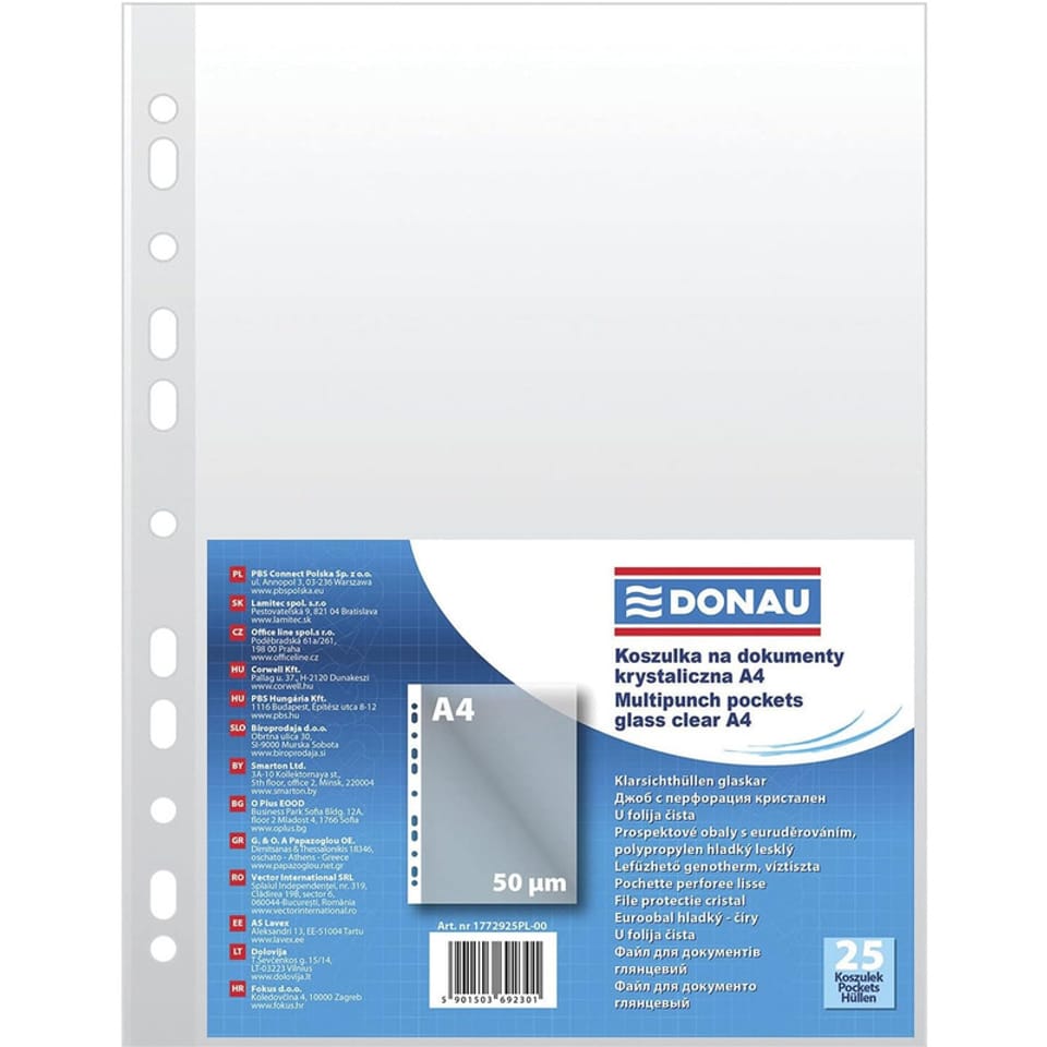 * wykonane z miękkiej, gładkiej folii polipropylenowej o grubości 50?m * krystaliczne, transparentne * otwarte na górze * antyelektrostatyczne * odpowiednie do dokumentów w formacie A4 * ilość dziurek do wpięcia: 11 * 25 sztuk w j.s. * wyprodukowane w fabryce posiadającej certyfikat kontroli jakości GB/T 19001-2016/ISO 9001:2015 * kolor transparentny