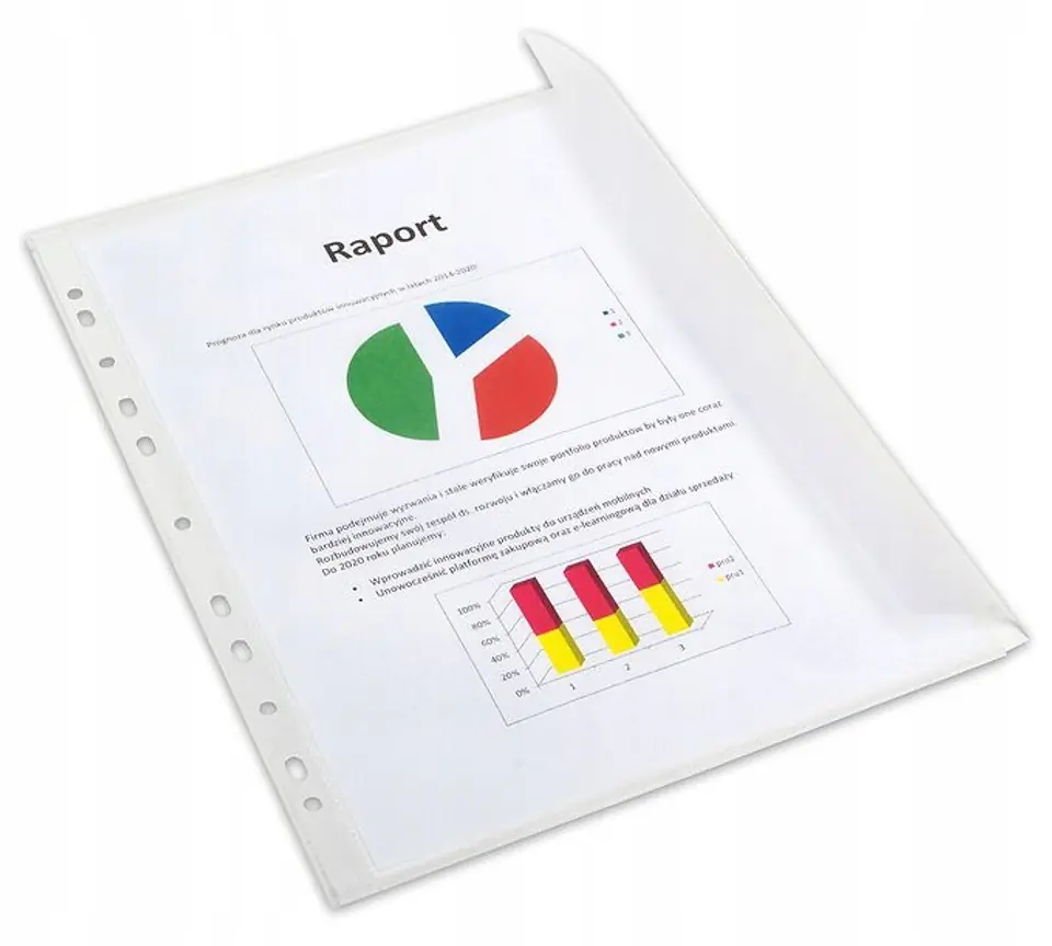 Uniwersalna perforacja pozwala na uzycie koszulek w kazdym segregatorze.