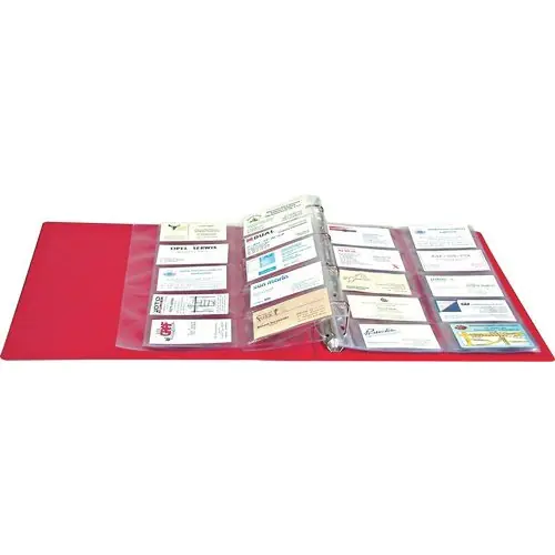Kazda koszulka na jednej stronie mieści 10 wizytówek w poziomie. Uniwersalne dziurkowanie pozwala wpiąc koszulki do kazdego segregatora.