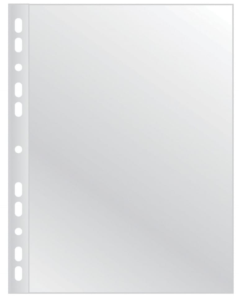 * wykonane z miękkiej, gładkiej folii polipropylenowej o grubości 55?m * posiada właściwości antyrefleksyjne * krystaliczne, transparentne * wzmocniony brzeg * otwarte na górze * antyelektrostatyczne * odpowiednie do dokumentów w formacie A4 * ilość dziurek do wpięcia: 11 * rozmiar: 232x306mm * 100 sztuk w j.s. (kartonik) * kolor transparentny