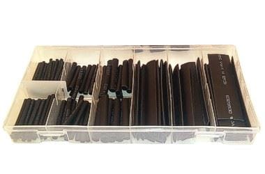 Zestaw 127 sztuk koszulek termokurczliwych w kolorze czarnym.