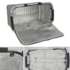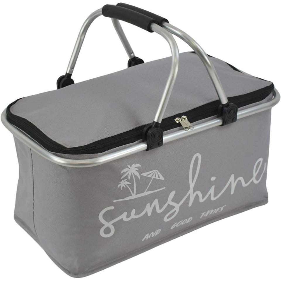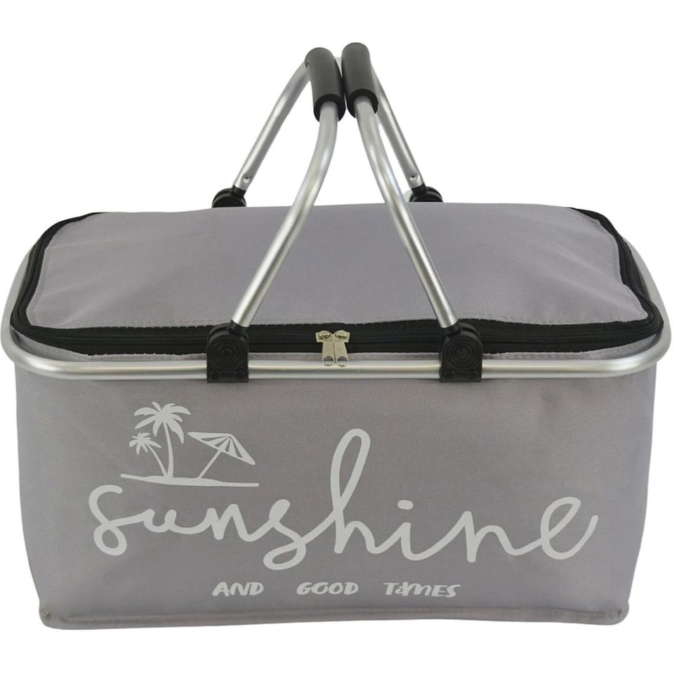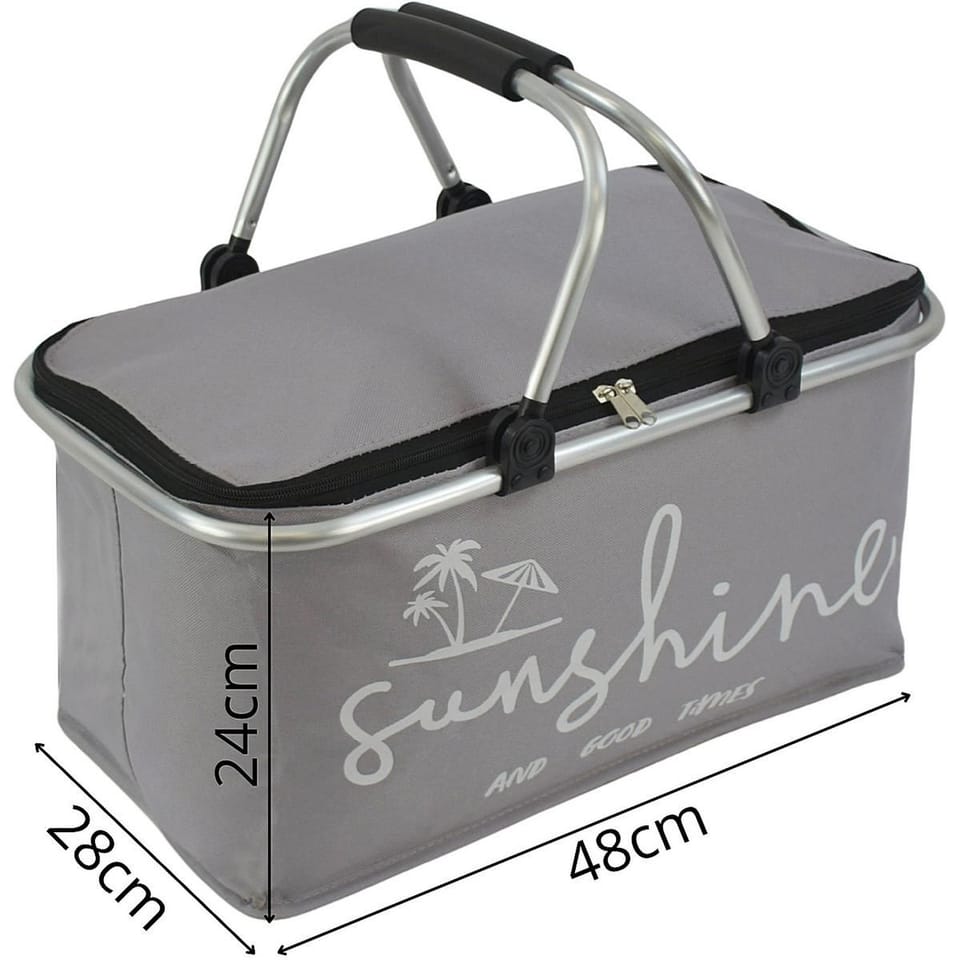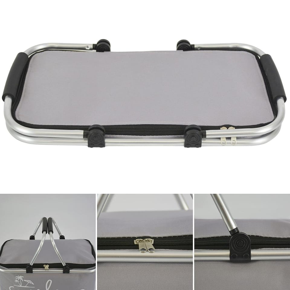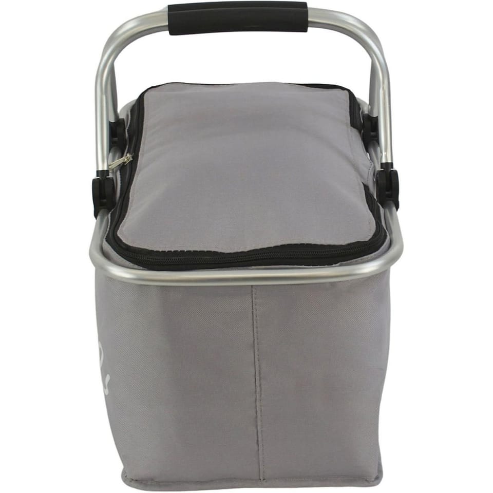 - Wymiary zew. koszyka (bez uchwytów) ok.: 48x28x24cm (szer. x gł. x wys.)Wymiary wew. koszyka ok.: 42x22x22cm (szer. x gł. x wys.)Wysokość uchwytów: 16 cmSkładane rączki: takKolor: szaryMateriał: poliester, aluminium, pianka EVAPojemność: 35 LWkłady chłodzące w zestawie: nieMarka: Redcliffs