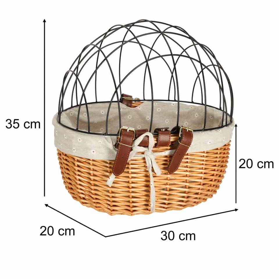 Kosz jest wykonany z wysokiej jakości wikliny, co gwarantuje jego wytrzymałość i wieloletnie użytkowanie. Piękny, naturalny wygląd wikliny w połączeniu z materiałową wyściółką nadaje mu niepowtarzalnego charakteru. Metalowa kratka zapewnia Twojemu pupilowi bezpieczeństwo podczas jazdy, chroniąc go przed wypadnięciem.