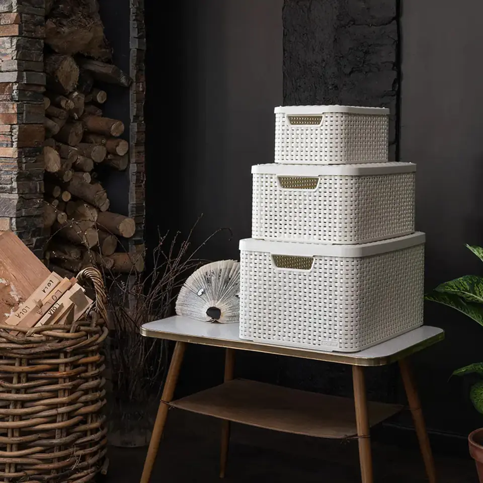 Koszyk z pokrywą Curver Rattan Style L jasny szary