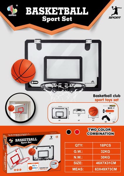 | Wymiary | - cały zestaw ok. 45,5 cm x 30,5 cm x 30 cm,- tablica ok. 45,5 cm x 30,5 cm x 1 cm,- średnica kosza ok. 24 cm,- piłka ok. 13 cm średnicy,- pompka ok. 19,5 cm x 5,5 cm,- klucz ok. 7 cm x 2,5 cm,- śrubokręt ok. 9,5 cm,- opakowanie ok. 47 cm x 31 cm x 7 cm. |