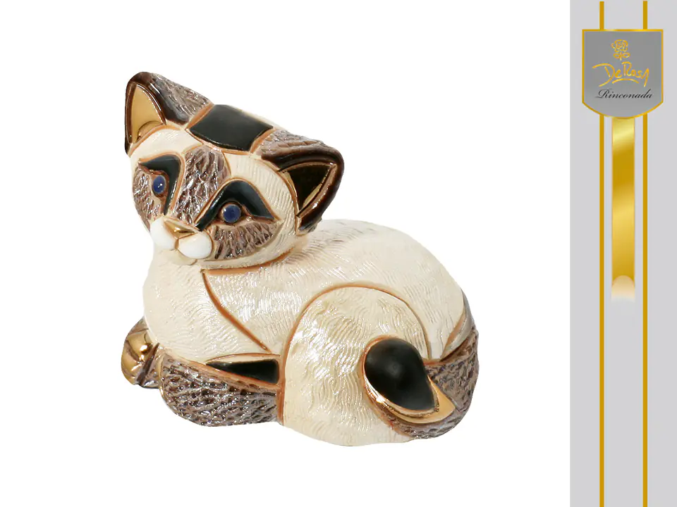 Bajeczna figurka przedstawiająca małego kotka syjamskiego z pięknymi zdobieniami. Niezwykłość zbioru polega na tym, że zakup 4 figurek z