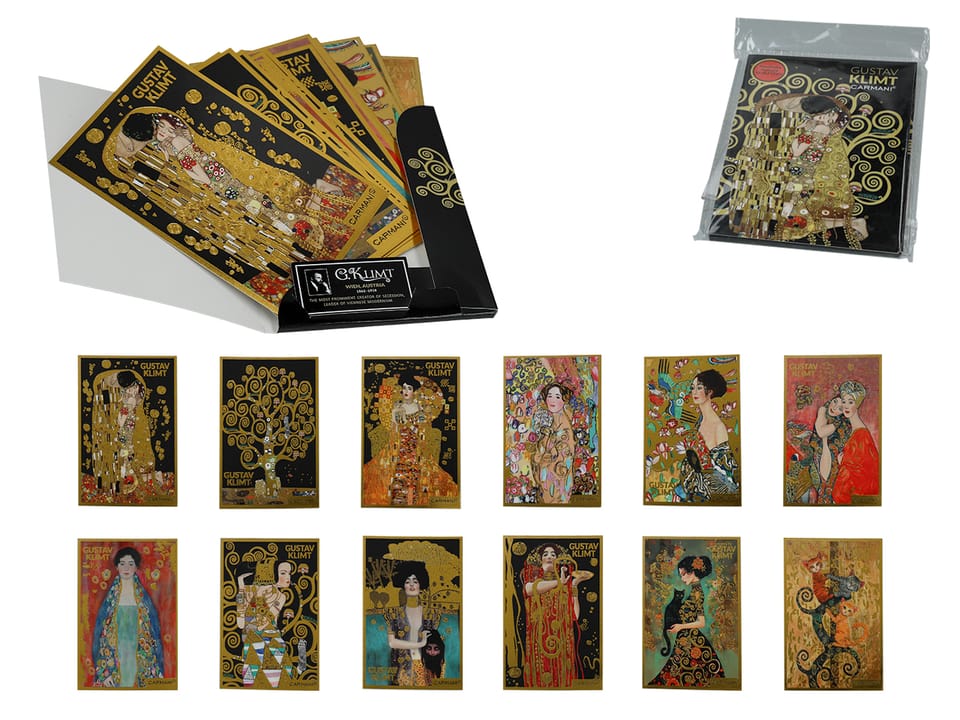 Kpl. 12 pocztówek w ozdobnej teczce - G. Klimt, mix wzorów CARMANI