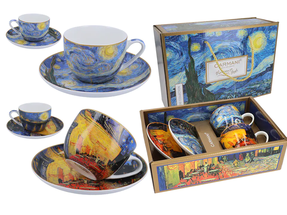 Kpl. 2 filiżanek ze spodkami - V. van Gogh, Taras kawiarni nocą i Gwiaździsta noc CARMANI