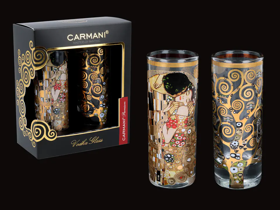 Kpl. 2 kieliszków do wódki - G. Klimt. Pocałunek + Drzewo CARMANI