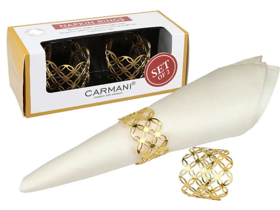 Kpl. 2 Pierścieni na serwetkę - Obrączki ażurowe, złote
