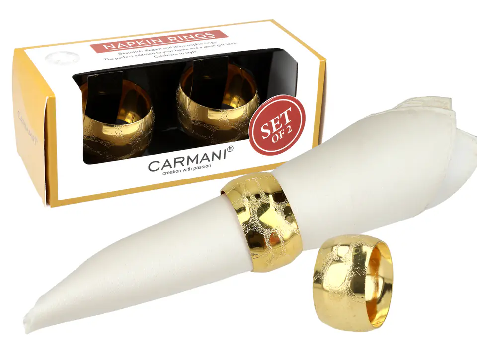 Wyjątkowa dekoracja na świąteczny stół. Eleganckie, złote pierścienie na serwetki.