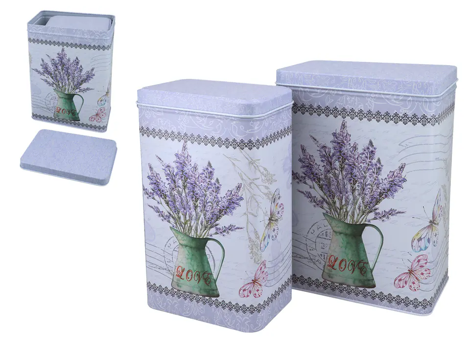 Komplet dwóch puszek z pięknym lawendowym wzorem - powiewlata w każdej kuchni.