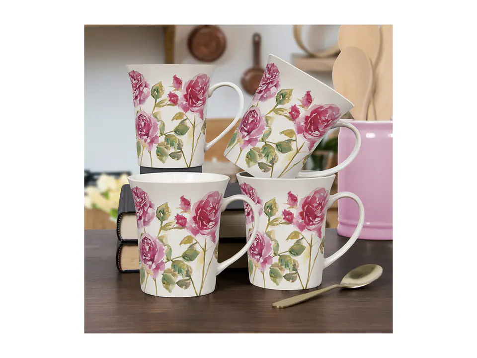 Komplet kubeczków porcelanowych jest niezwykle elegancki i uroczy. Każdy z kubeczków ma piękne ozdoby, które dodają im wyjątkowego uroku.Kubeczki mają idealny rozmiar, aby pomieścić ulubiony napój, czy to kawa, herbata czy gorąca czekolada.