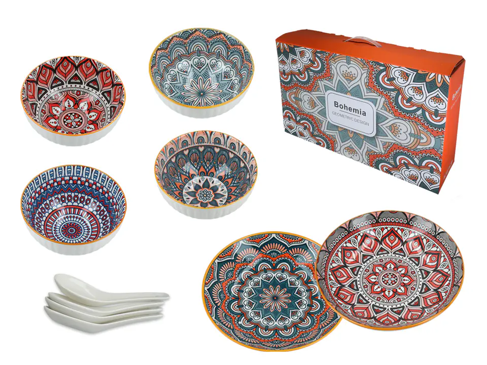 Kpl. 4 miseczek z łyżeczkami + 2 talerze