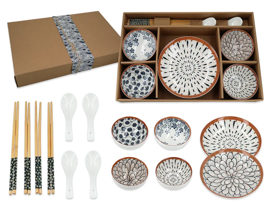Kpl. 4 miseczek z łyżeczkami + 2 talerze +pałeczki