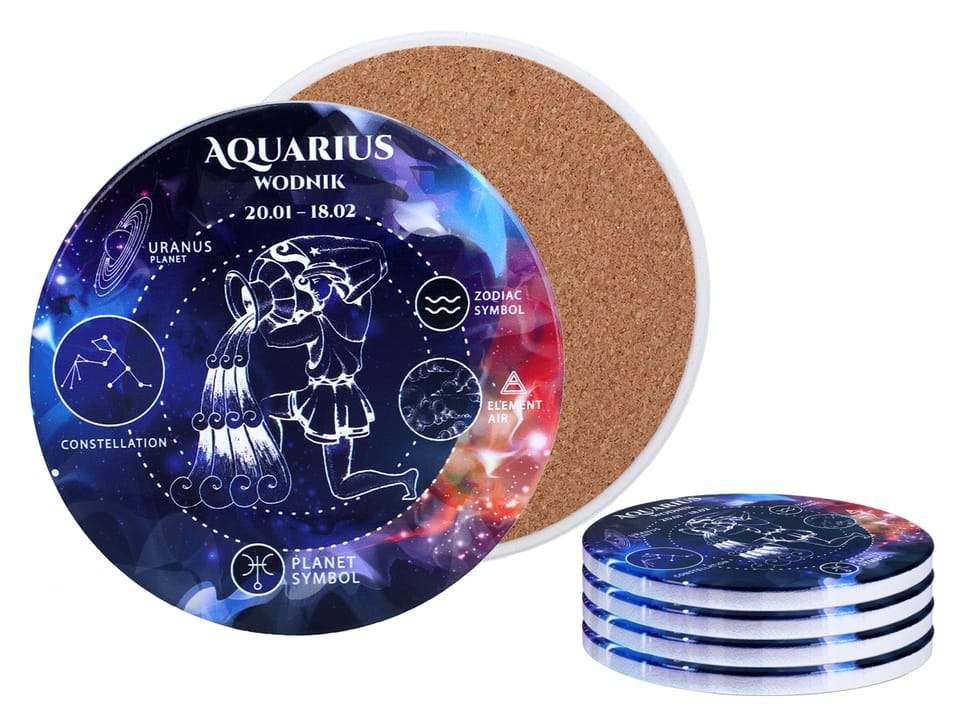 Kpl. 4 podkładek ceramicznych, okrągłe - Znaki zodiaku, Wodnik CARMANI
