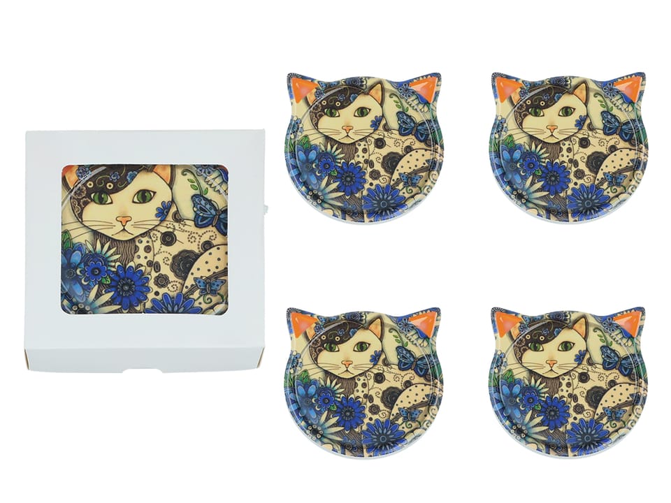 Kpl. 4 podkładek ceramicznych z uszami, koty.