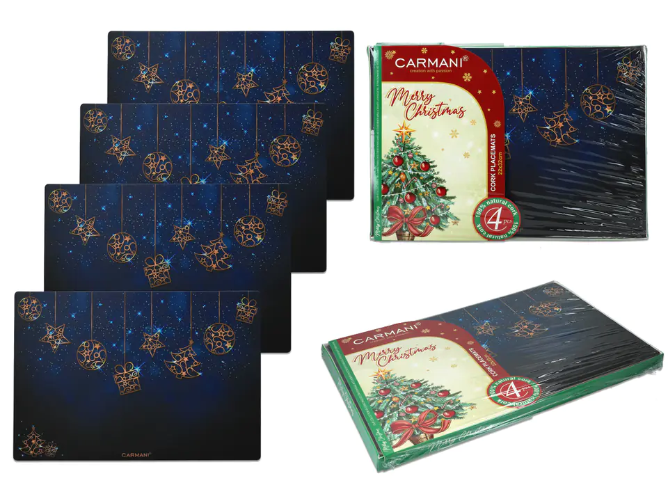 Kpl. 4 podkładek korkowych pod talerze - Boże Narodzenie CARMANI