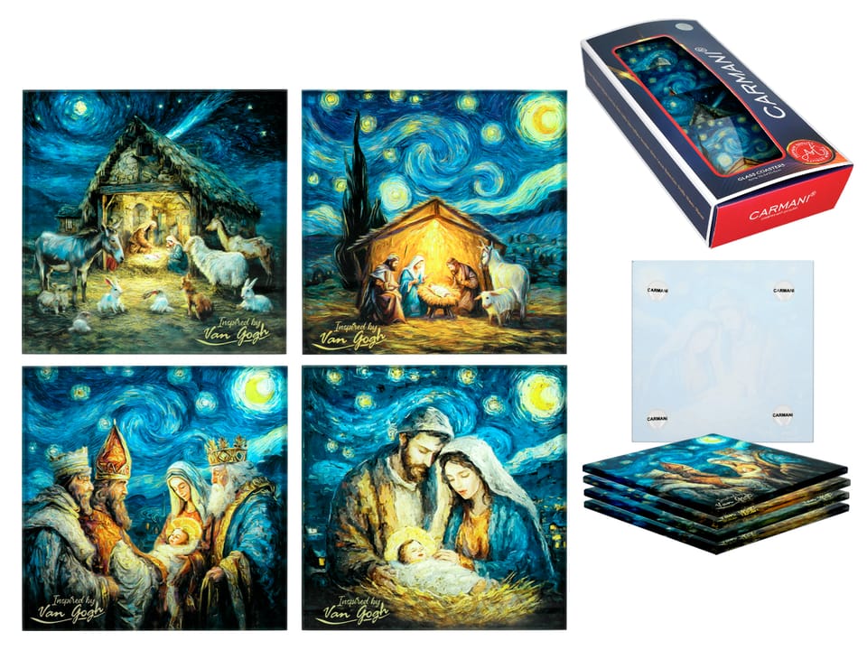 Kpl. 4 podkładek szklanych - inspirowane malarstwem van Gogha, Boże Narodzenie CARMANI