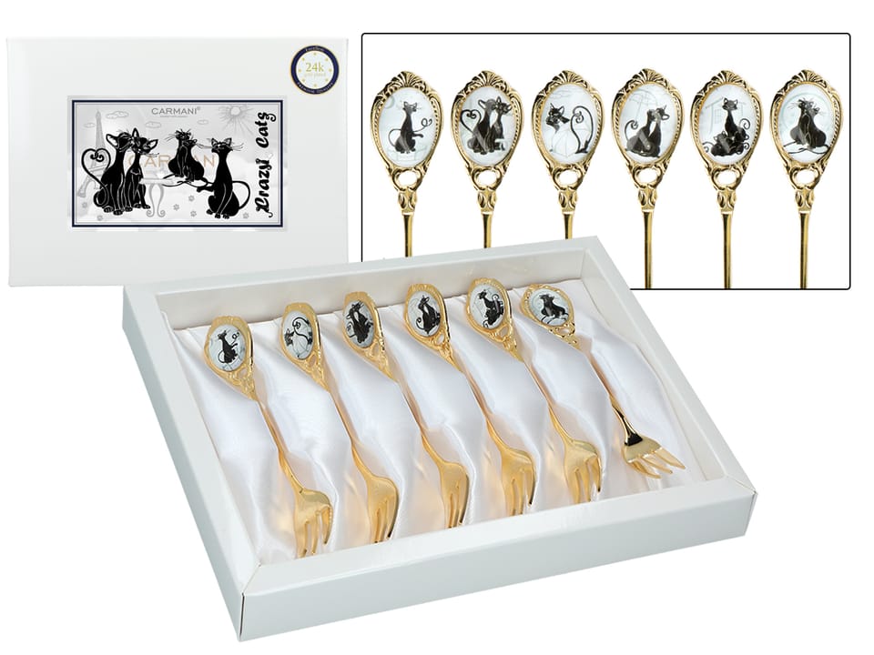 Kpl. 6 widelczyków powlekanych 24K złotem - Crazy Cats CARMANI