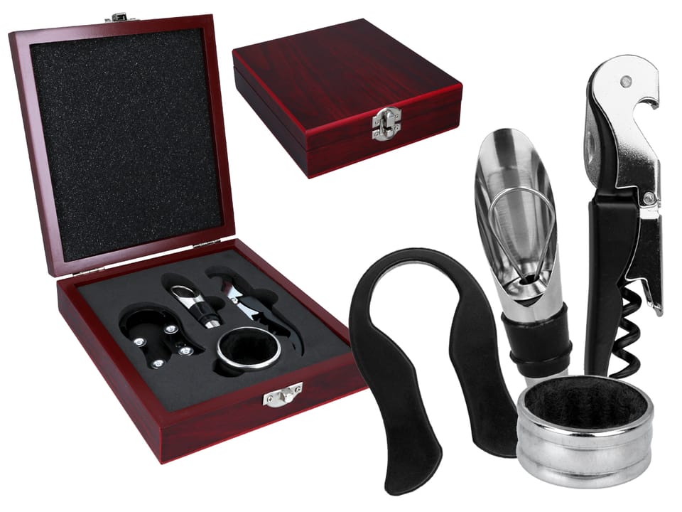 Nie musisz być sommelierem, żeby otworzyć butelkę jak zawodowiec - wystarczy mieć dobry zestaw np. z korkociągiem, zatyczką i nalewakiem. Taki zestaw jest idealny na prezent - praktyczny ale luksusowy i co ważne w eleanckim drewnianym opakowaniu.