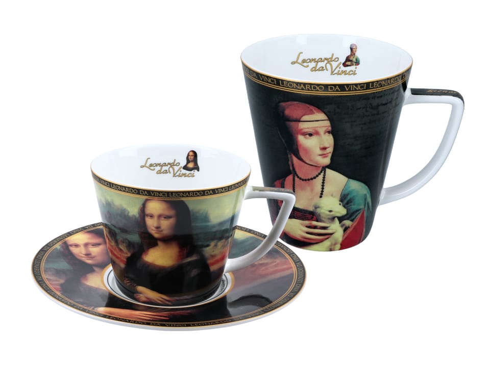 Kpl. filiżanka i kubek - L. da Vinci, Mona Lisa, Dama z łasiczką CARMANI