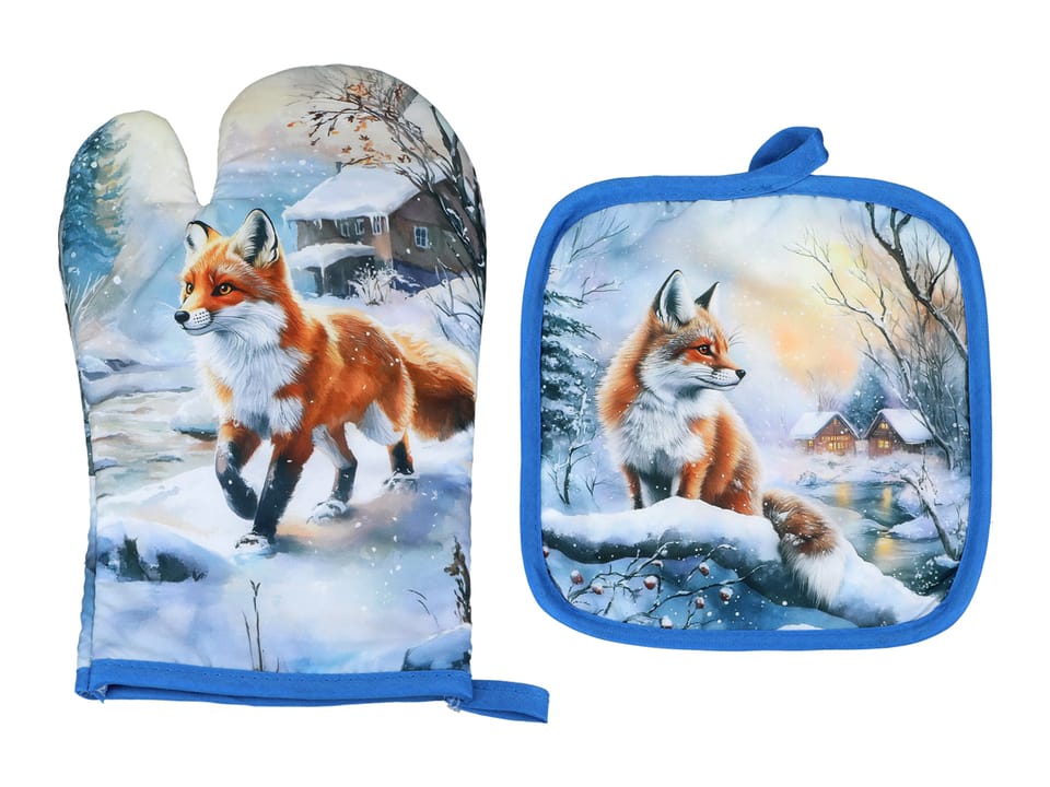 Kpl. Łapka i rękawica kuchenna - Zimowe zwierzęta - Lisy CARMANI