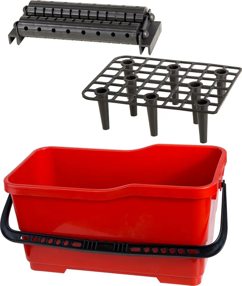 - Możliwość zamontowania czterech kółek 61637 pozwalających na przemieszczanie wiadra w zakresie 360° bez konieczności noszenia
