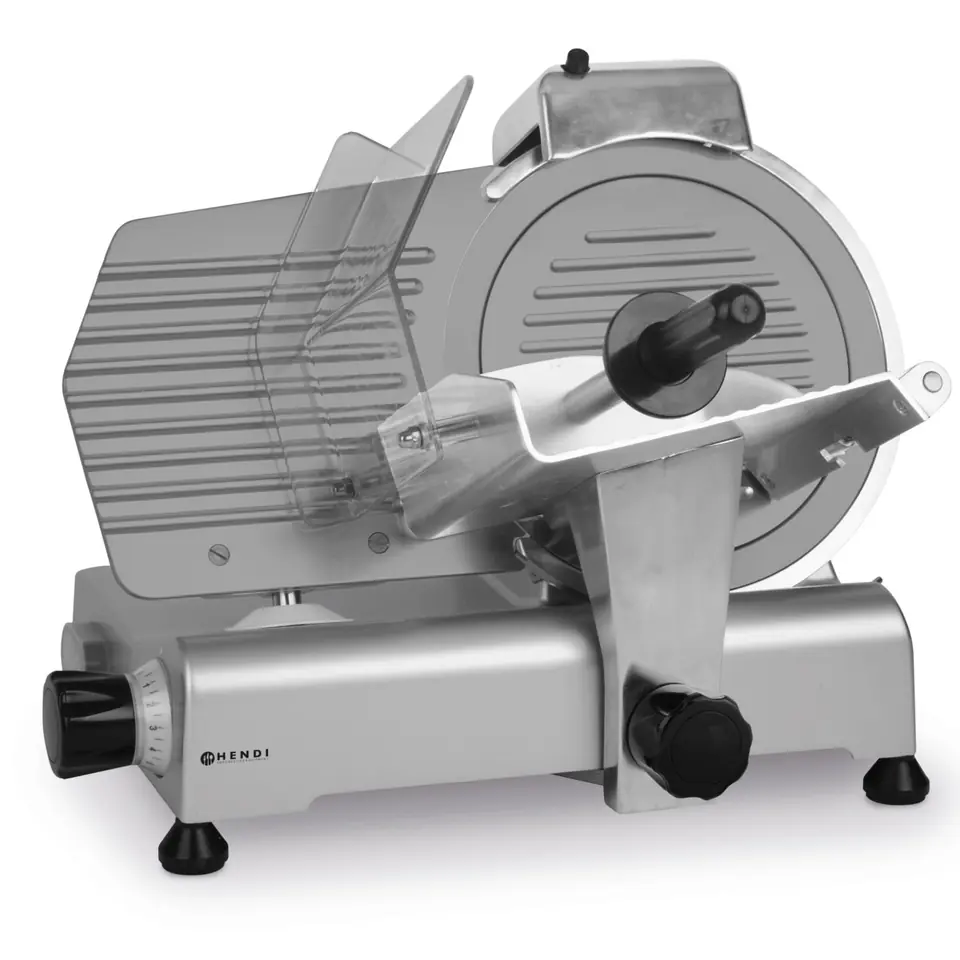 Numer producenta: 210222 Profesjonalna krajalnica z linii Kitchen Line marki Hendi to niezbędne urządzenie w punktach gastronomicznych oraz sklepach wędliniarskich.Cechy produktu: