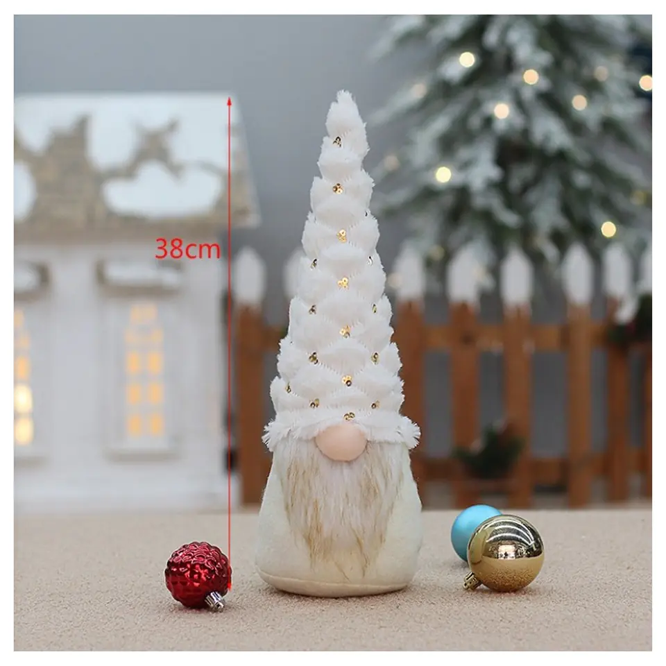 Świąteczny krasnal siedzący KSN116Wypełniony pluszemDla stabilizacji w tułowiu posiadają piasek - co dodatkowo je obciążaWymiary:Wysokość: 38 cm (przy wyprostowanej czapce)Szerokość: 11 cmWaga: 288g