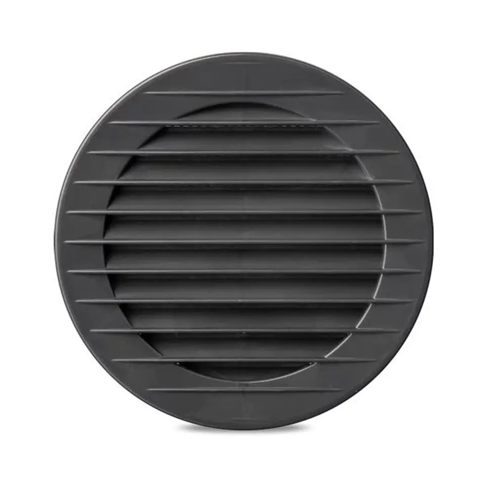 KRATKA OKRĄGŁA Z SIATKĄ FI 100 GRAFIT Kratki wentylacyjne okrągłe z siatką to zakończenia systemu wentylacyjnego nawiewno-wywiewne do pomieszczeń wewnątrz i na zewnątrz budynku. Zalecane są do montażu w rury spiro i do systemów wentylacyjnych z tworzywa oraz pod stropodachy.Plusem tej kratki wentylacyjnej jest wylana już na etapie produkcji siatka, która trzyma insekty z daleka od mieszkania. Nasz unikalny sposób polega umieszczeniu siatki w projekcie na etapie produkcji dzięki czemu nie brudzi się, nie zrywa, nie niszczy oraz jest w kolorze kratki – na stałe zachowuje swoje walory estetyczne. Kształt żaluzji kieruje powietrze “w dół” dzięki czemu w pomieszczeniach, w których znajduje się nasza kratka wentylacyjna nie powstaje efekt przeciągu.**
