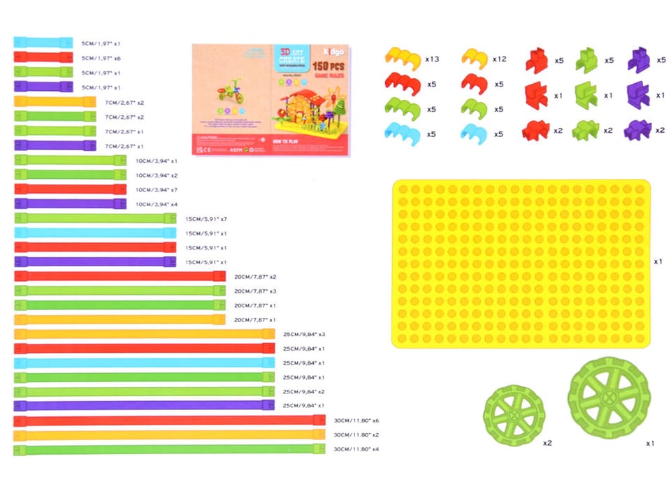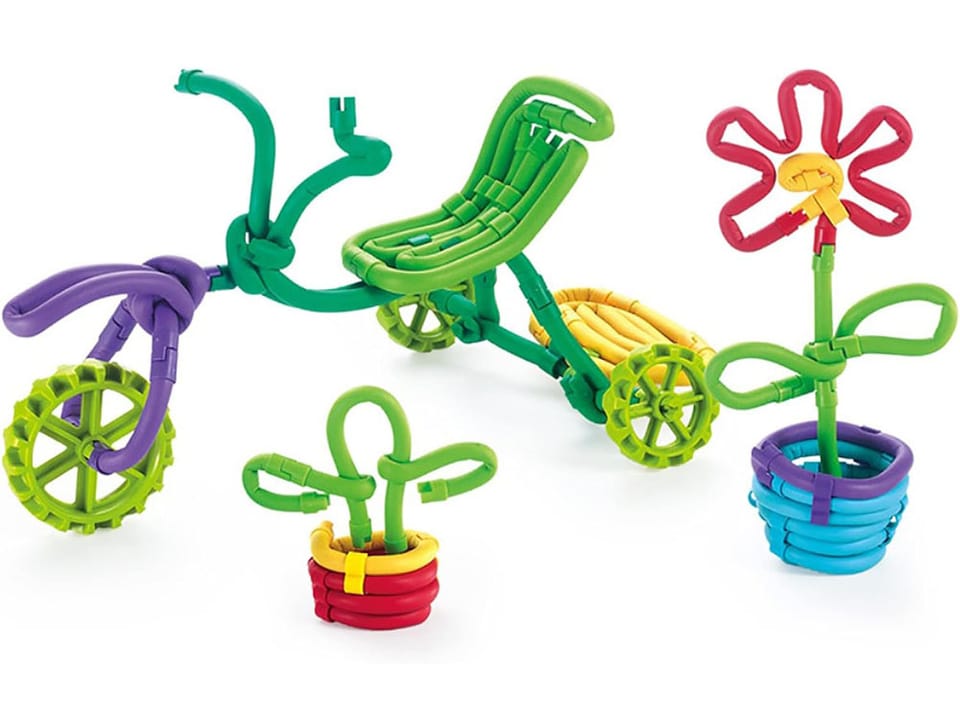 Kreatywny zestaw giętkich klocków tzw. makaronów przypadnie do gustu każdemu dziecku. Zestaw składa się z 150 elementów, dzięki czemu zapewni mnóstwo pomysłów na zbudowanie przeróżnych figur, budowli, zwierzątek itp.