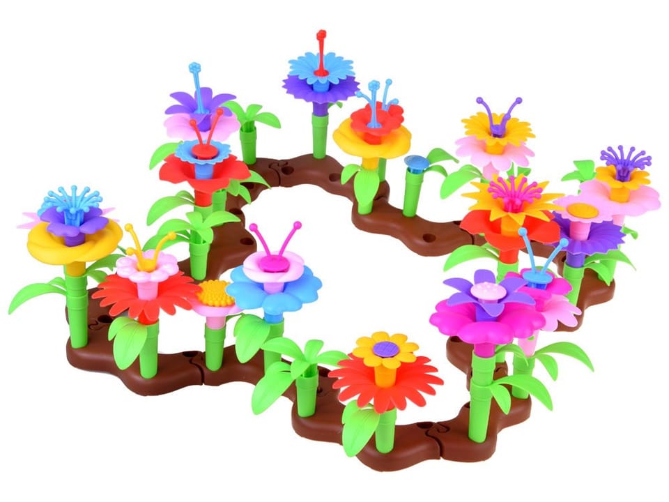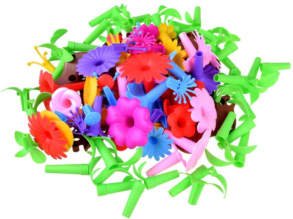 Kolorowe klocki kwiatki. Zestaw kolorowych, kreatywnych klocków do ułożenia rabatki z kwiatów, który pozwoli każdemu małemu dziecku spędzić kreatywnie wolny czas.