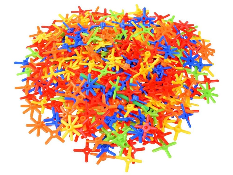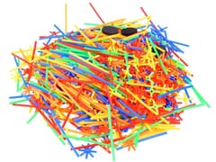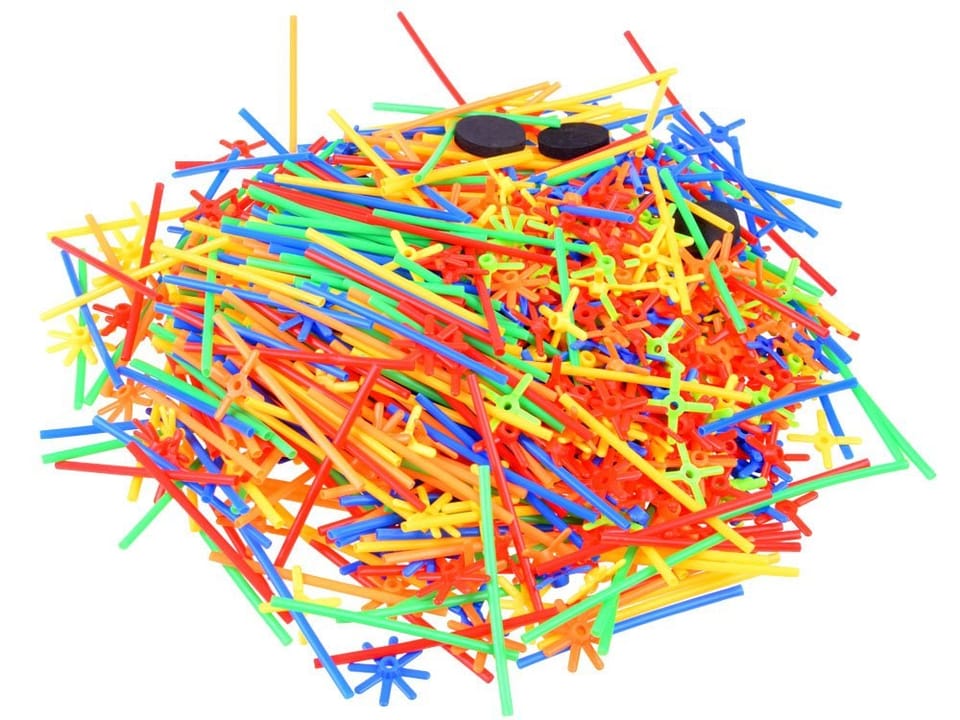 W zestawie:- 4 piankowe koła (średnica ok. 3,5cm)- ok.60 łączników ośmioramiennych- ok.425 łączniku czteroramienne- ok.511 patyczki słomki (długość ok. 10cm)