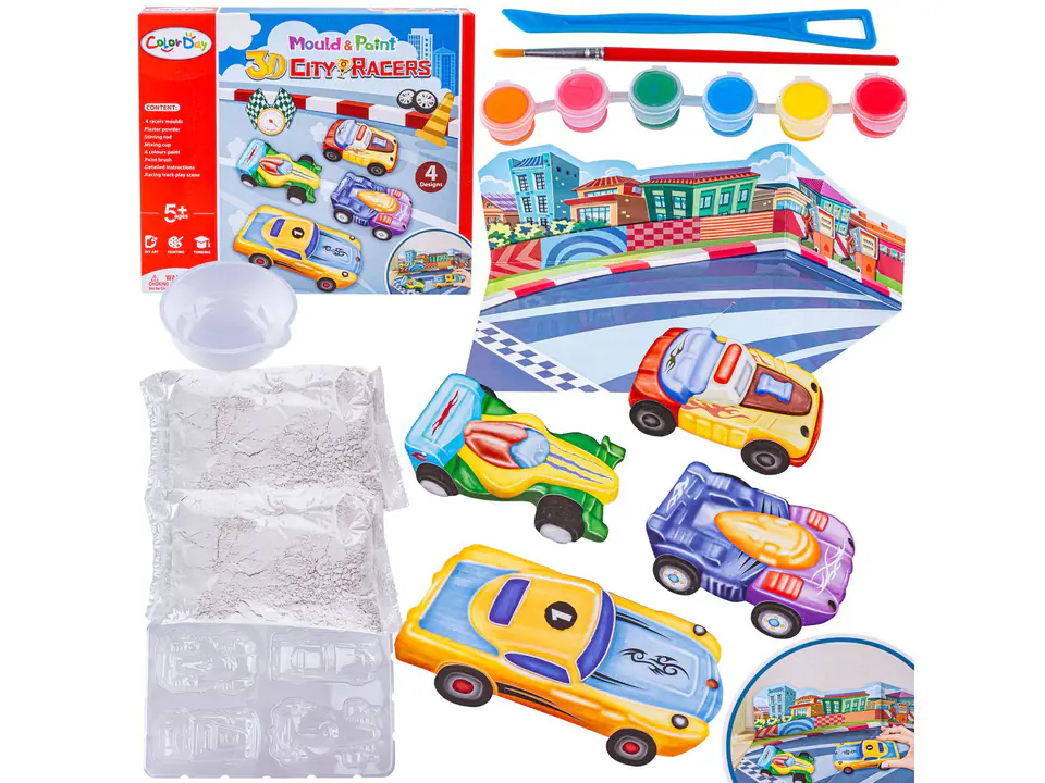 Kreatywny Zestaw Stwórz Odlew DIY MIEJSKIE WYŚCIGÓWKI, AUTA 3D, CITY RACERS 4 Sztuki Zrób To Sam