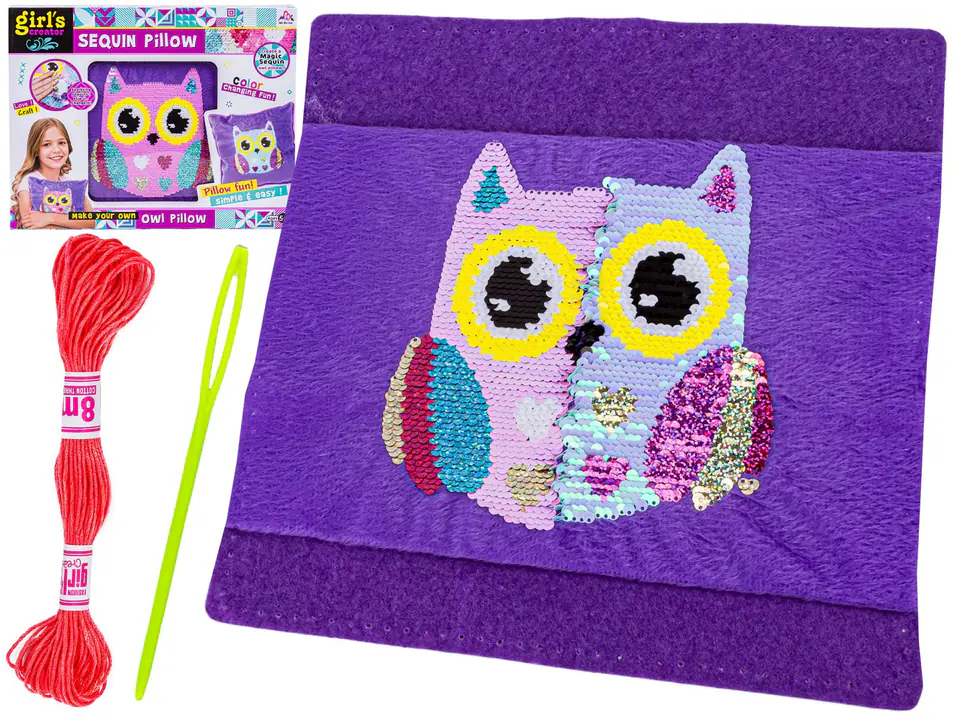 Kreatywny Zestaw, Wyszywanka, Pluszowa PODUSZKA Do Szycia DIY JASIEK Z Cekinami SOWA