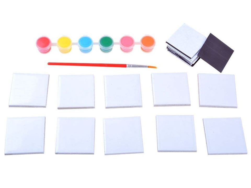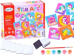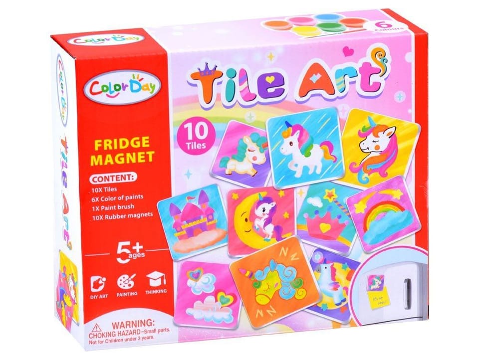 Kreatywny zestaw dla dzieci lubiących prace ręczne. Zestaw przeznaczony do samodzielnego stworzenia przez dziecko pięknych magnesów, które doskonale mogą ozdobić naszą lodówkę lub tablicę. Dziecko za zadanie ma pomalować ceramiczne płytki wedle uznania i wyobraźni oraz nakleić taśmę magnetyczna. Zestaw pozwala na stworzenie 10 różnych magnesów. Magnesy to ulubiona pamiątka z każdych wakacji, teraz może zostać wykonana samodzielnie przez dziecko przy użyciu wyobraźni.Zestaw zawiera:- 10 płytek ceramicznych (4,5 x 4,5cm)- 10 naklejek magnesów- 6 kolorów farby- pędzelW bezpieczny i łatwy sposób bez użycia specjalnych sprzętów można stworzyć coś pięknego. Zestaw rozwinie umiejętności manualne, artystyczne, pozwoli na uzyskanie satysfakcji z własnoręcznie wykonanego dzieła. A także zapewni spędzenie wolnego czasu dziecka w sposób efektowny i ciekawy.Zestaw zapakowany jest w śliczne pudełko-idealnie nadające się na prezent.
