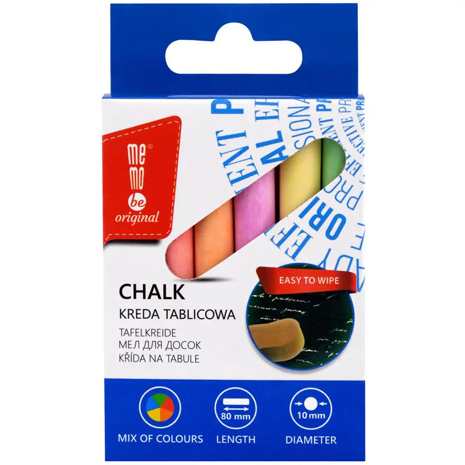 Kreda do tablic MemoBe. Kreda kolorowa o śr. 9,5 mm i dług. 8 cm. Znakomicie nadaje się do wykonywania napisów i oznaczeń na powierzchniach kredowych i magnetycznych kredowych. Optymalny stopień twardości zapewnia komfortowe pisanie i rysowanie oraz niski stopień pylenia. Opakowanie zawiera 12 szt. mix kolorów.