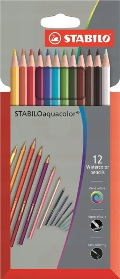 Te wyrafinowane kredki z wkladami o średnicy 2,8 mm zapewniają pokrycie bogatymi, intensywnymi kolorami i mozliwośc stworzenia prawdziwych arcydziel. STABILOaquacolor to idealny wybór dla wszystkich ekspertów od kolorów - w szkole, na uczelni oraz w pracy.