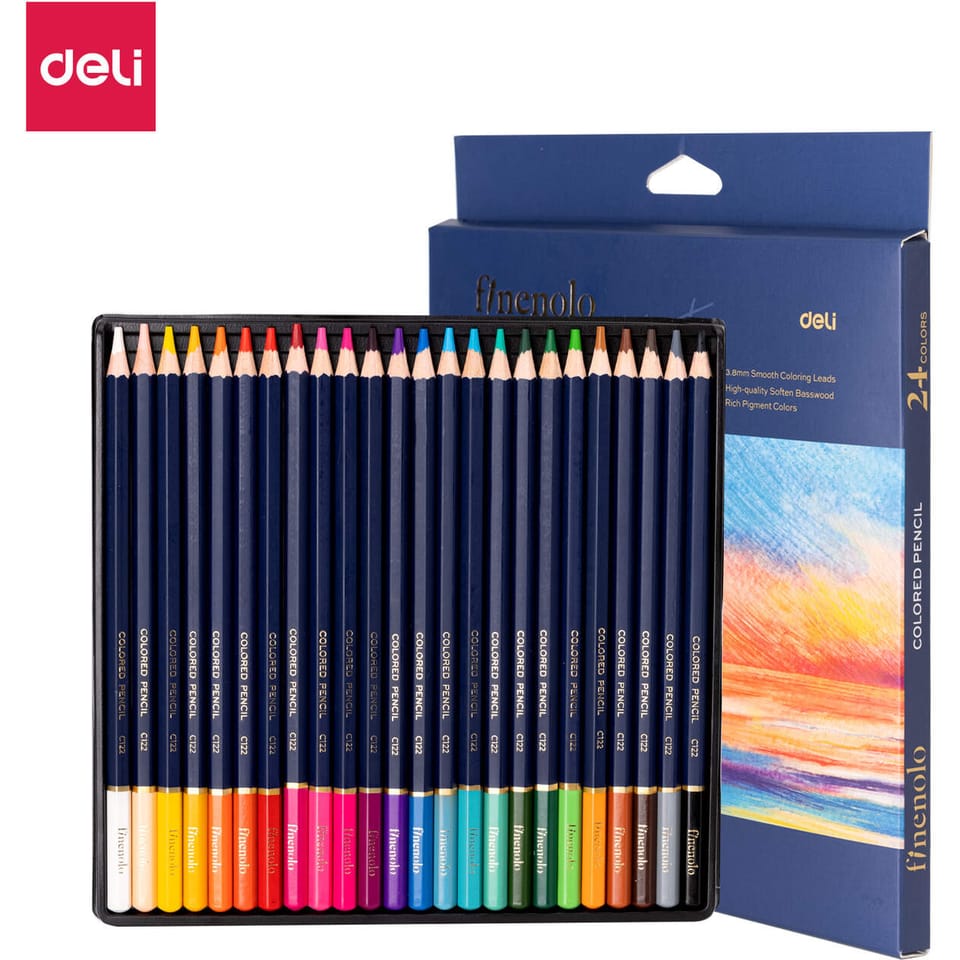 Ostra końcówka tych kredków Deli C131-24 wytrzymuje nawet silny nacisk, a piszą one miękko, pozostawiając jasny ślad na każdym rodzaju papieru.