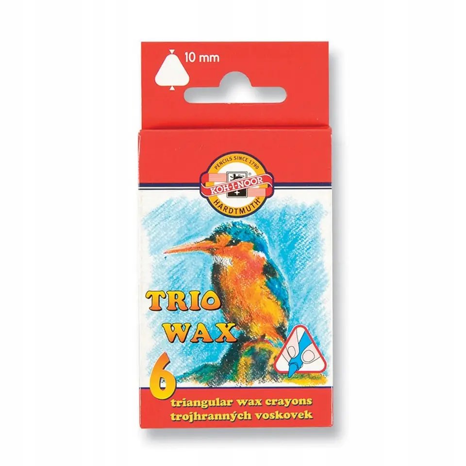 Kredki woskowe o trójkątnym przekroju wytwarzane na bazie wysokiej jakości surowców. Są odporne na zlamania, nie kruszą sie, nie pylą i nie brudzą rąk. Mają doskonale wlaściwości kryjące, doskonale nadają sie do kreślenia lagodnych linii na wszystkich rodzajach papieru.