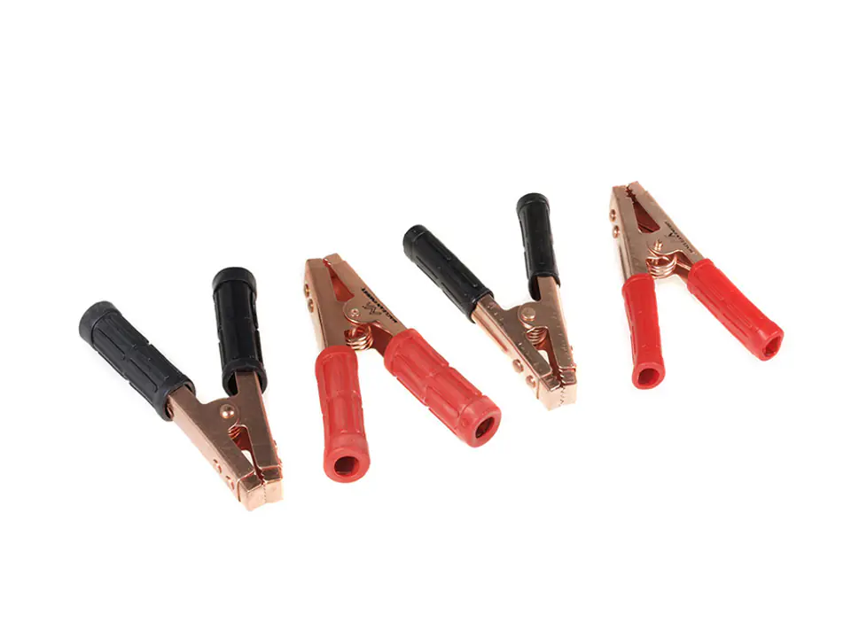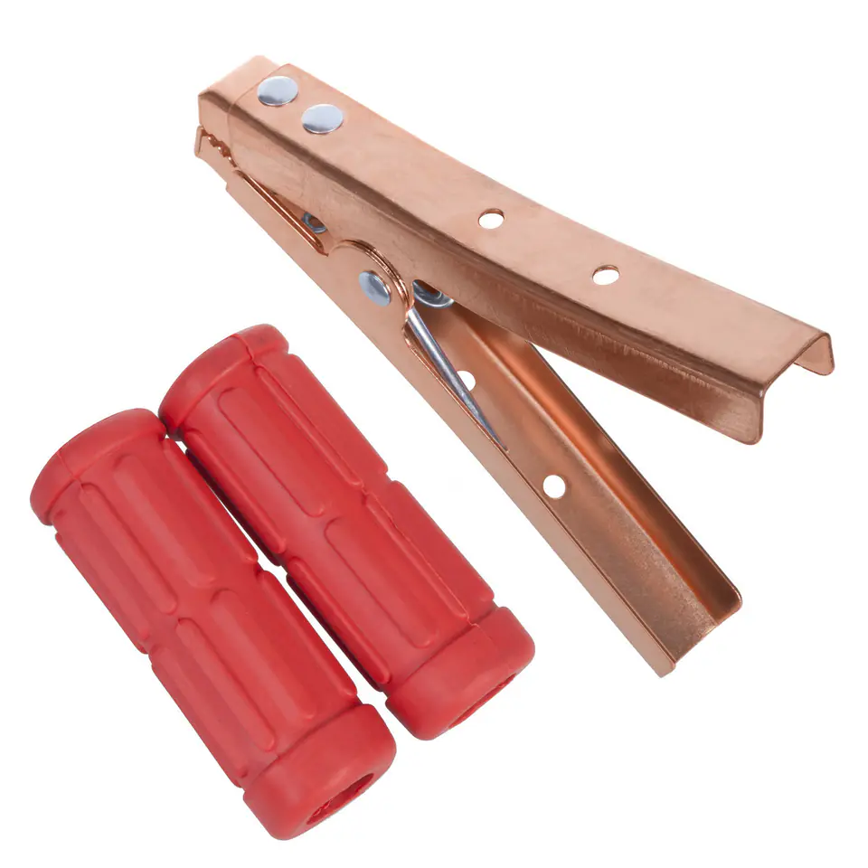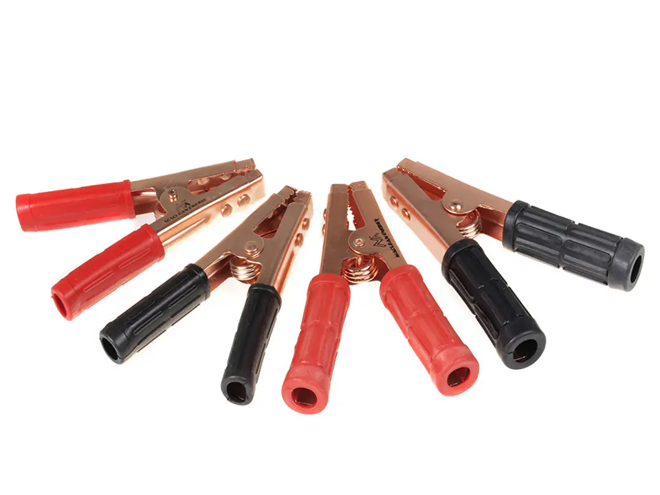 Solidne, duże krokodyle z rączkami izolowanymi o maksymalnym prądzie 600A – idealnie nadające się do zmontowania własnych kabli rozruchowych, bazujących na przewodach typu LGY bądź ONS.Porządny zacisk krokodylowy, końcówki pokryte miedzią gwarantują pewny przepływ prądu, bez wypalania.