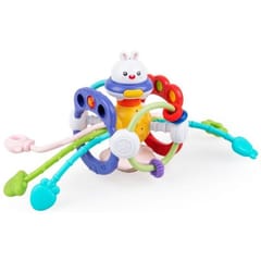 Króliczek Kolorowe Linki Zabawka pełna sensorycznych atrakcji, które nie tylko zabawią maluszka, ale dostarczą mu też okazji do rozwijania zdolności poznawczych. Znajdujący się na górze zabawki króliczek uroczo piszczy przy naciskaniu. Znajdziemy tu też linki do przeciągania, różniące się kolorem, kształtem i fakturą, ruchome koraliki, terkocący kwiatek - grzechotkę, kuleczkę do przesuwania oraz trzy kuleczki pop it do wciskania. Wszystkie te precyzyjne czynności pomogą bobasowi ćwiczyć motorykę małą i odkrywać zależności przyczynowo - skutkowe. Cechy produktu: - kuleczki do wciskania; - linki do przeciągania; - króliczek piszczy przy naciskaniu; - kwiatek terkocze przy przekręcaniu; - grzechoczące koraliki; - ruchowe elementy; Wiek: 12m+
