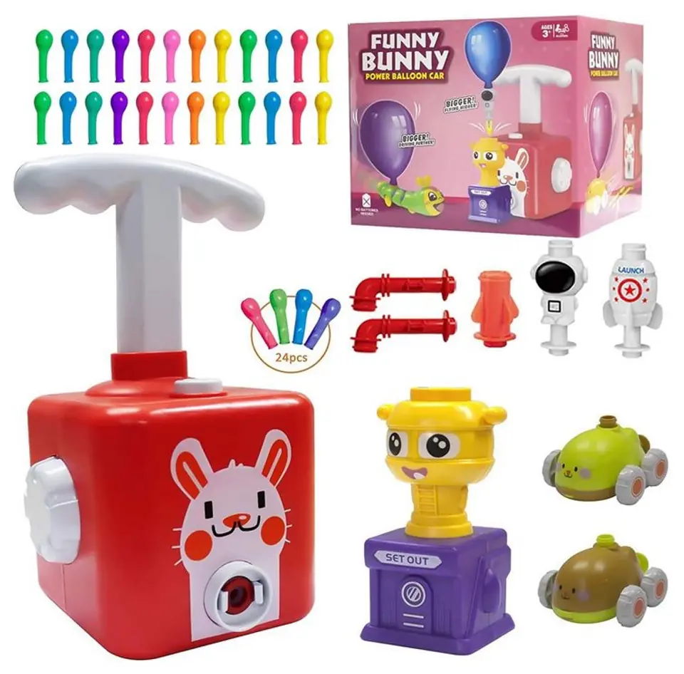 Duży zestaw Królik 2 in 1 to powietrzna wyrzutnia samochodów i rakiet.