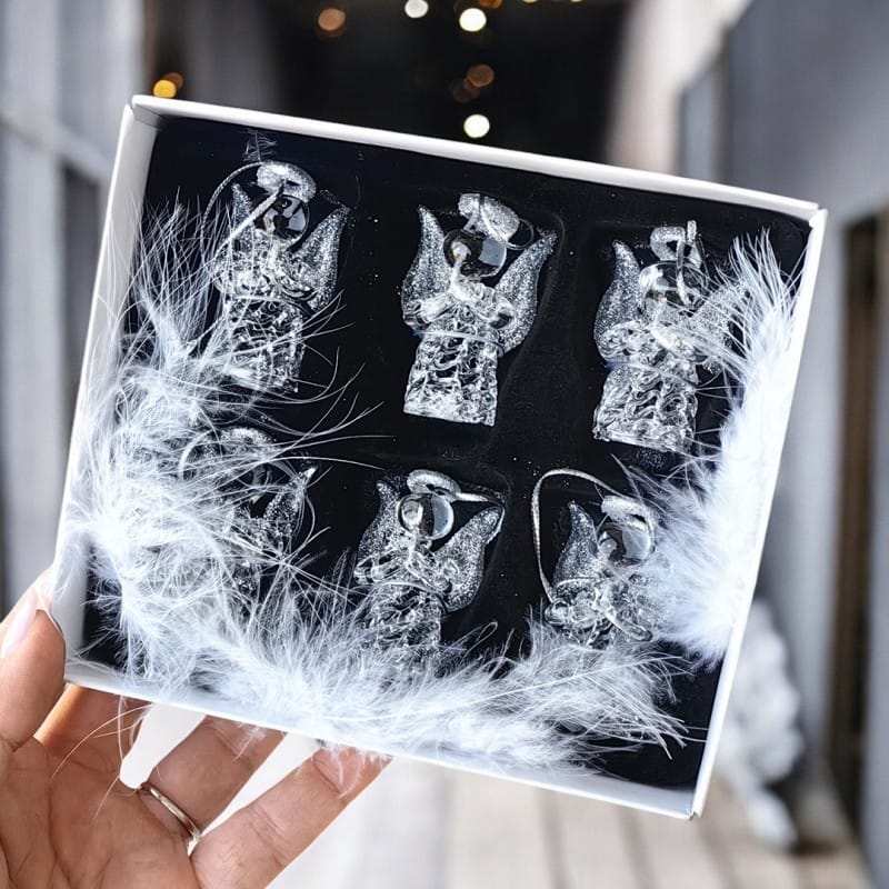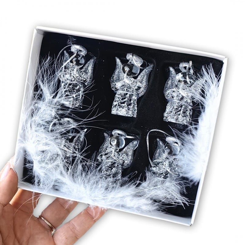 Zestaw ozdób świątecznych- AniołkiZestaw 6 mini ozdób choinkowych Przezroczysty szklany materiał jest elegancki i ponadczasowy Wymiary 1sztuki aniołka:Wysokość: 4,7 cmSzerokość: 2,1 cmWaga 1sztuki aniołka: 15g Wymiary opakowania:15cm x 13cm x 4cmWaga opakowania:115g Poczuj świąteczny klimat! Dodaj swojemu wnętrzu odrobinę zimowej magii.Aniołki nadają się jako ozdoba świąteczna do powieszenia na oknie, choince lub jako prezent, a nawet do dekoracji stroików!