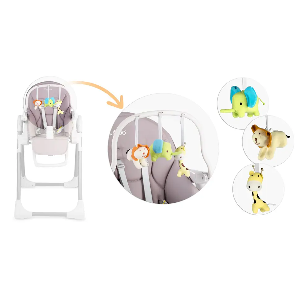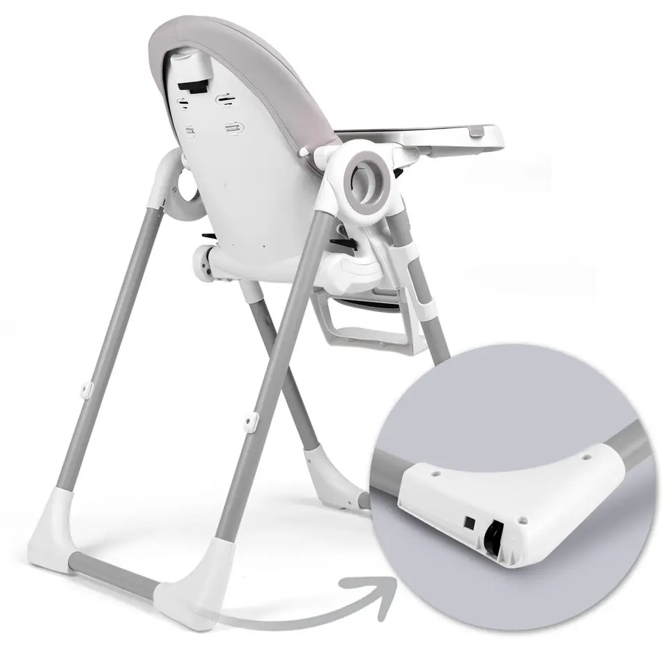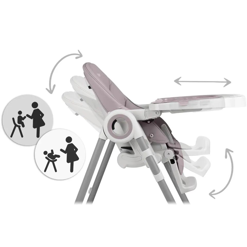 - możesz regulować położenie tacki lub ją zdemontować, gdy chcesz wyciągnąć dziecko z krzesełka lub przystawić je do stołu przy rodzinnym obiedzie