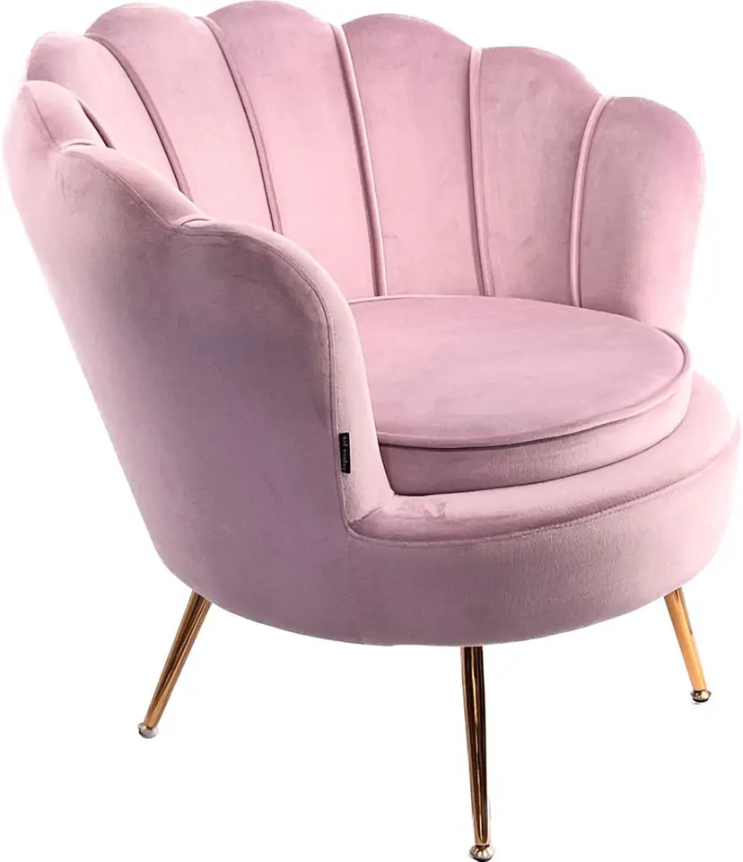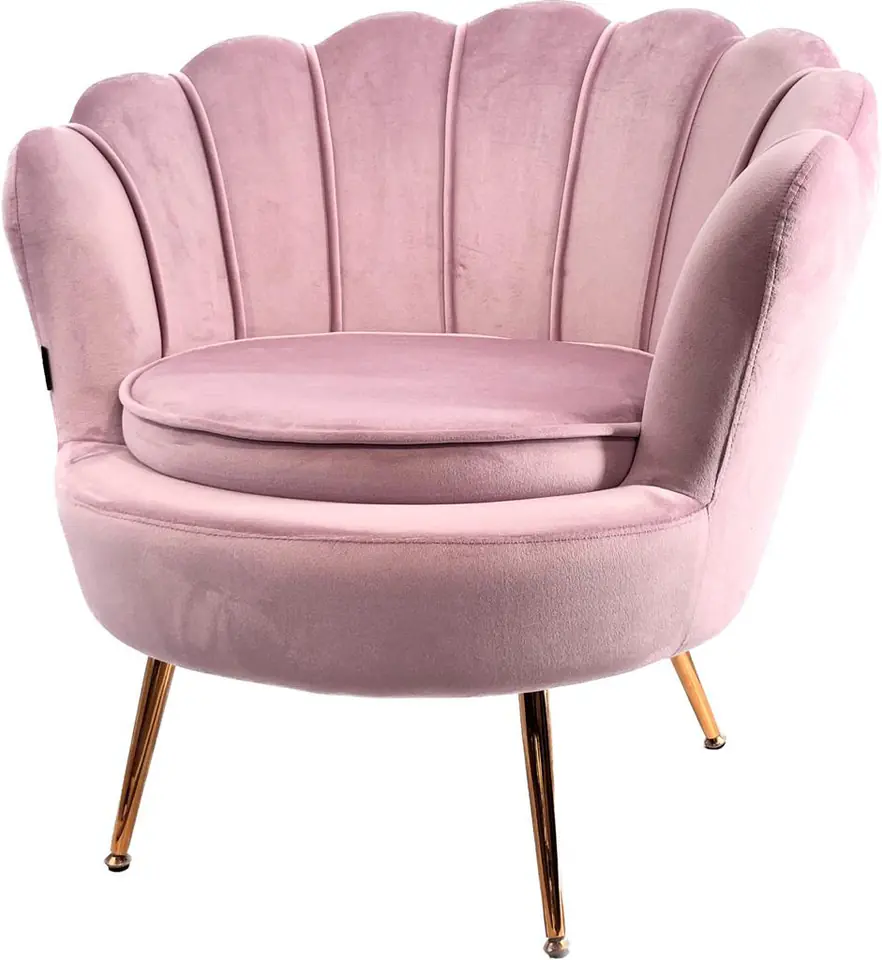 DONNA VELVET PINK - Fotel krzesło tapicerowane w kolorze różowym, z unikatowym wzorem siedziska oraz oparcia i złotych nogach.