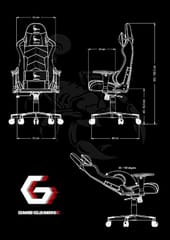 - Mocna nylonowa podstawa, gąbka w oparciu i zagłówku oraz formowana pianka wewnątrz siedziska